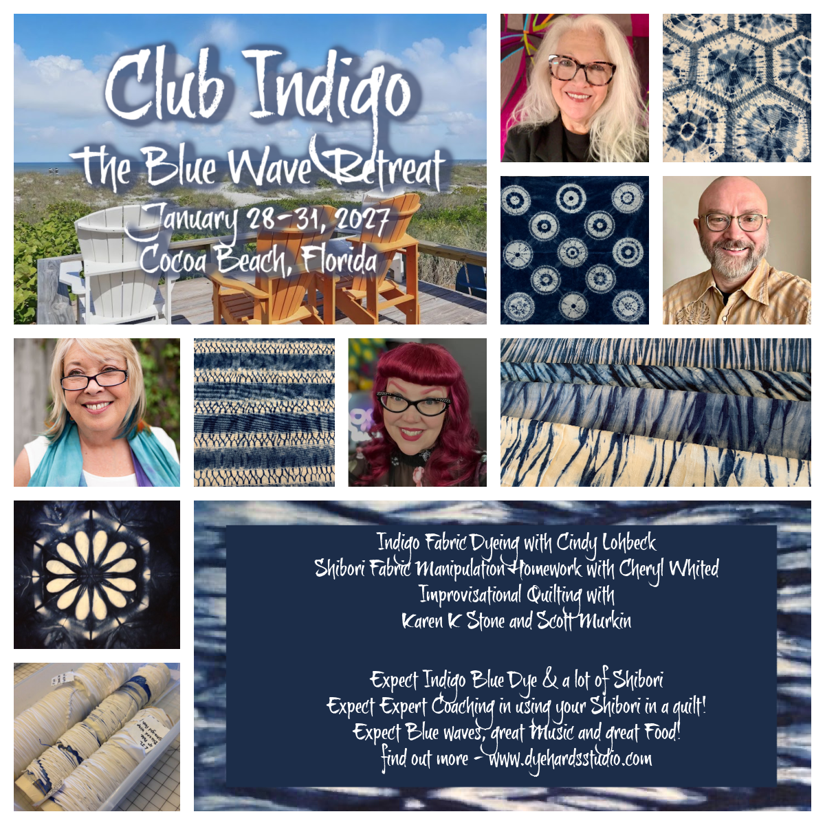 Come ready to dye, design, stitch, laugh, and immerse yourself in indigo.